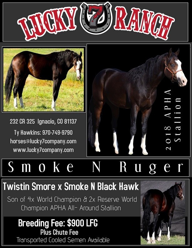 Smoke N Black Hawk - 2003 APHA World Champion Calf Roping Horse 2002 APHA World Champion Working Cowhorse 2002 APHA Reserve World Champion Reining 2002 APHA Reserve World Champion Calf Roping 2001 APHA World Champion Amateur Reining 1999 APHA World Champion Heeling