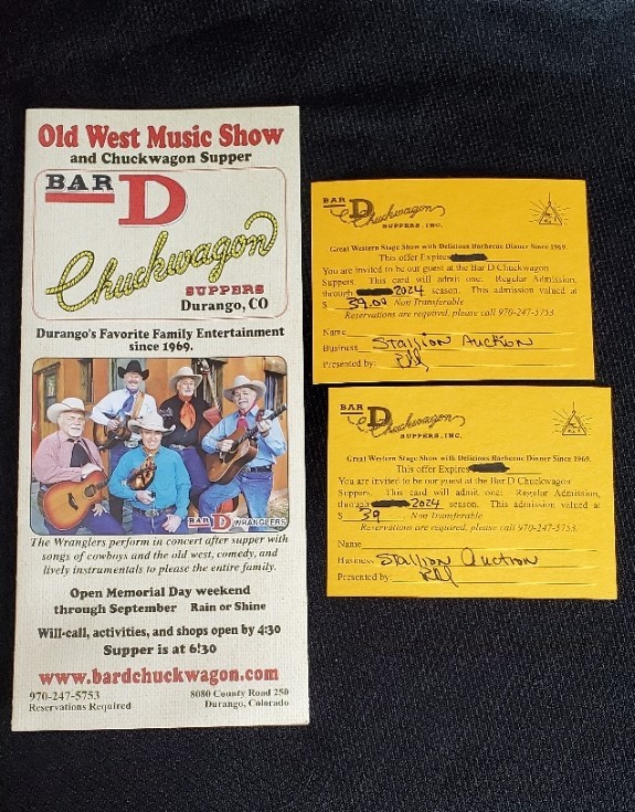 Listing ID: 7786 Bar D Chuckwagon Dinner Show tickets - Lot #2 This Listing is Now Closed
