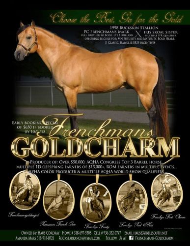 This 2015 Stallion Breeding contract is transferable to the mare owner/bidder who bids the highest amount for the 2015 breeding auctioned online with www.PerfectHorseAuctions.com beginning Nov. 17, 2014 and ending Dec. 16, 2014.