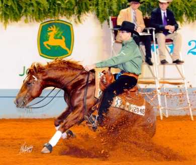 Shine On Sayo by Shining Spark is an NRHA money earner and producer of two performing foals.