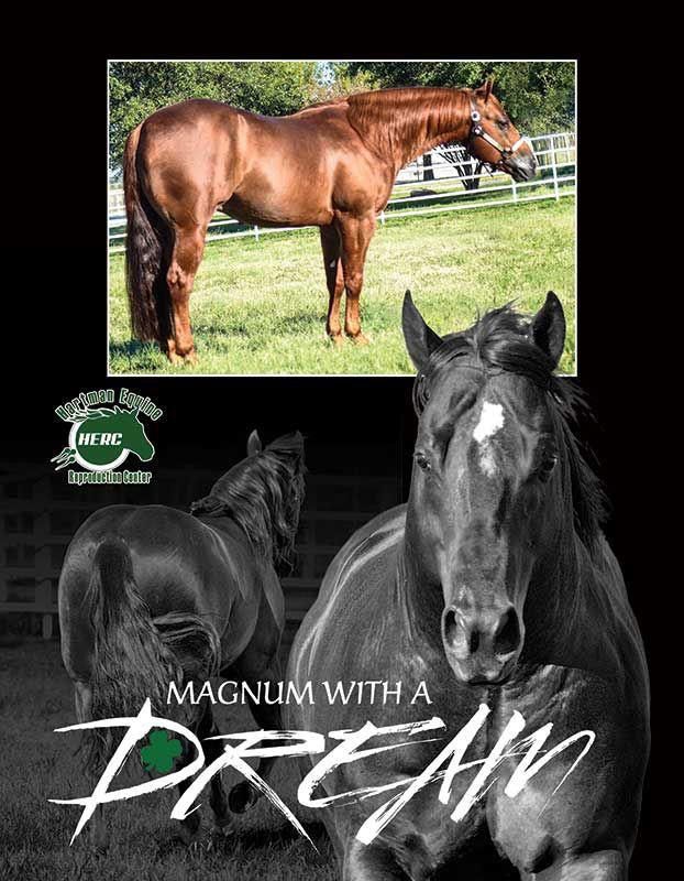 Magnum Chic Dream, $44,494 and 100 AQHA points. AQHA World Champion Senior Reining Horse, NRHA Million Dollar Sire, siring earners of over $1,993,850 including: Lil Magnum Jessie ($161,208), NRHA Open Futurity Reserve Champion; Magnum With A Dream ($126,649); this Chics Dundreamin ($124,609), NRBC Intermediate Non Pro & Limited Non Pro Derby Champion; Chicsdundreamin ($101,111) split fifth, 2010 NRHA Open Futurity, Champion of the Intermediate Open; Stop Like A Dream ($96,732) NRBC Open Derby Co-Reserve Champion; Bit Of Magnum ($51,620 & 113 AQHA points) 2010 NRHA Limited Non Pro World Champion.